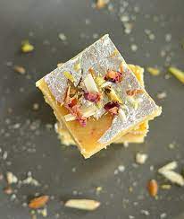- एक कप खोवा लेना एक बता दो कब पिस्ता ले ले सजावट के लिए चांदी का वर्क ले लीजिये |